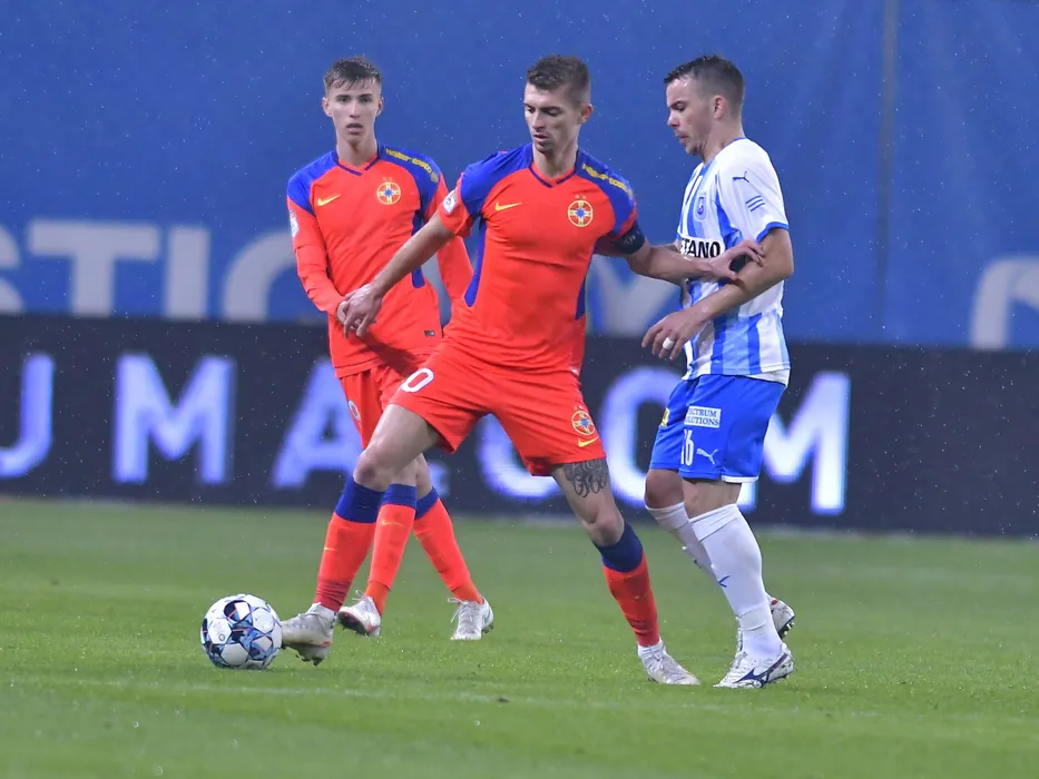 Octavian George Popescu, Florin Lucian Tanase si Dan Nicolae Nistor in meciul de fotbal dintre Universitatea Craiova si FCSB, contand pentru Liga 1 Casa Pariurilor, desfasurat pe Stadionul Ion Oblemenco din Craiova, duminica 28 noiembrie 2021. © FOTO:Razvan Pasarica/SPORT PICTURES