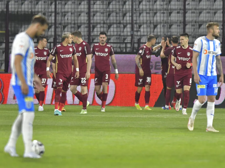 Bucurie a fotbalistilor clujeni dupa un gol marcat cu Cristian Marian Manea, George Daniel Birligea si Daniel Graovac in meciul de fotbal dintre CFR Cluj si Universitatea Craiova, contand pentru Play-off-ul Ligii 1 Casa Pariurilor, desfasurat pe Stadionul CFR Dr. Constantin Radulescu din Cluj Napoca, duminica 15 mai 2022. © FOTO:Razvan Pasarica/SPORT PICTURES