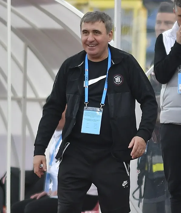 Gheorghe Hagi se bucura in meciul de fotbal dintre FC Arges si Farul Constanta, contand pentru Play-off-ul Ligii 1 Casa Pariurilor, desfasurat pe Stadionul Nicolae Dobrin din Pitesti, sambata 9 aprilie 2022. © FOTO:Razvan Pasarica/SPORT PICTURES