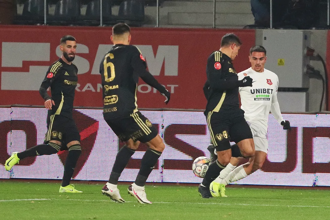 Lucas Gabriel Masoero, Radu Ștefaniță Boboc și Goncalves Tiago Lisboa Silva în meciul de fotbal dintre AFC Hermannstadt Sibiu si FC Universitatea Cluj, petru Superliga Superbet, desfășurat pe Stadionul Municipal din Sibiu, sâmbătă 23 noiembrie 2024. © FOTO: Valentin MACREA/SPORT PICTURES