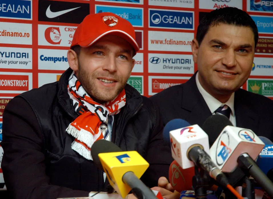 Bogdan Lobont (portar Dinamo Bucuresti),Cristian Borcea (presedinte executiv) razand.