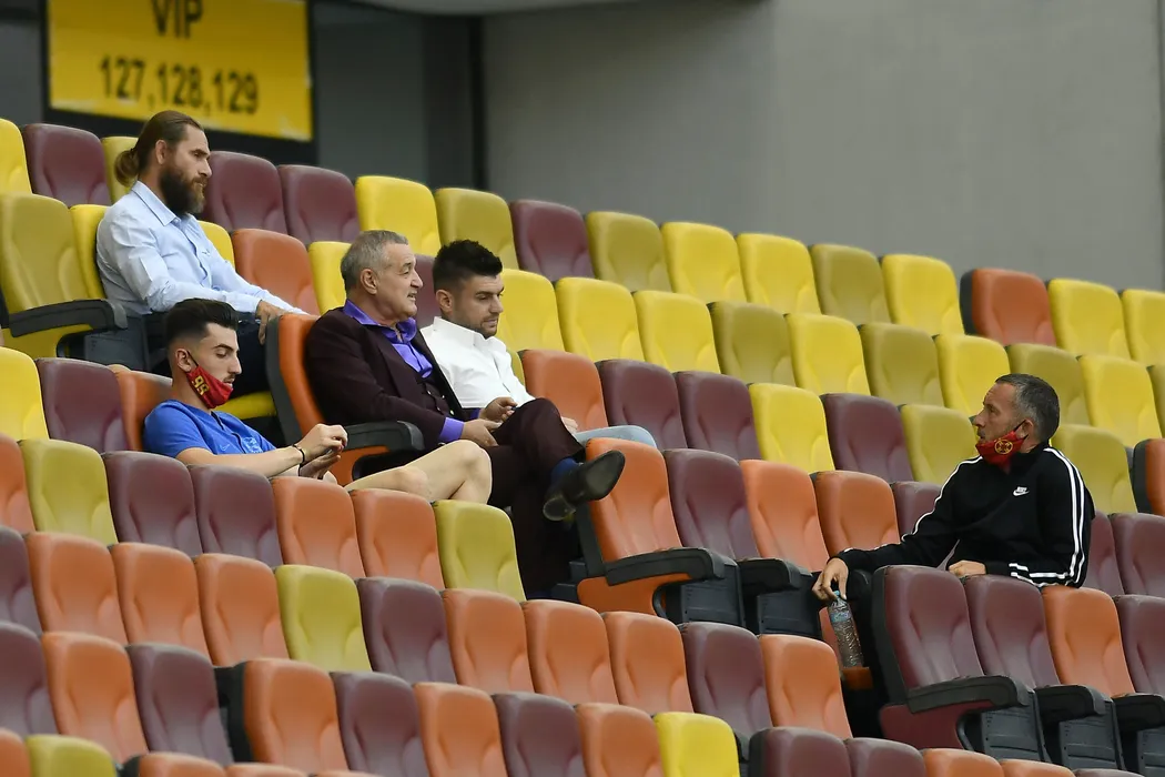 Alexandru Tudor,Andrei Daniel Vlad, Gigi Becali si Mihai Stoica asista din tribuna la meciul de fotbal dintre FCSB si Dinamo Bucuresti, contand pentru returul semifinalei Cupei Romaniei, disputat fara spectatori pe Arena Nationala din Bucuresti, miercuri 8 iulie 2020. © FOTO:Razvan Pasarica/SPORT PICTURES