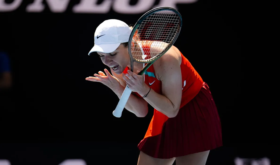 Simona Halep of Romania in action during the first round of the 2022 Australian Open Grand Slam tennis tournament