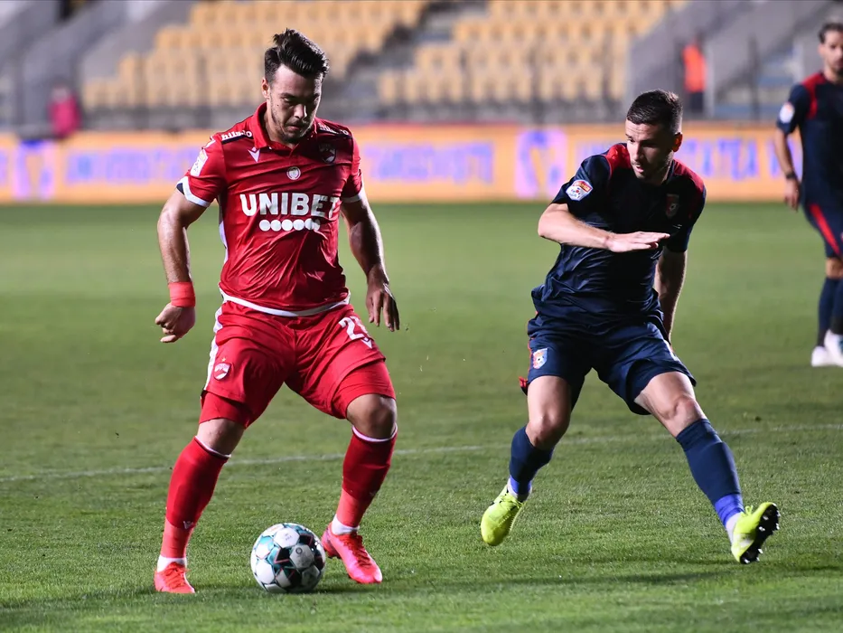 Mihai Alexandru Neicutescu si Cornel Dinu in meciul de fotbal dintre Chindia Targoviste si Dinamo Bucuresti, contand pentru Liga 1 Casa Pariurilor, desfasurat fara spectatori pe Stadionul Ilie Oana din Ploiesti, luni 31 august 2020. © FOTO:Razvan Pasarica/SPORT PICTURES