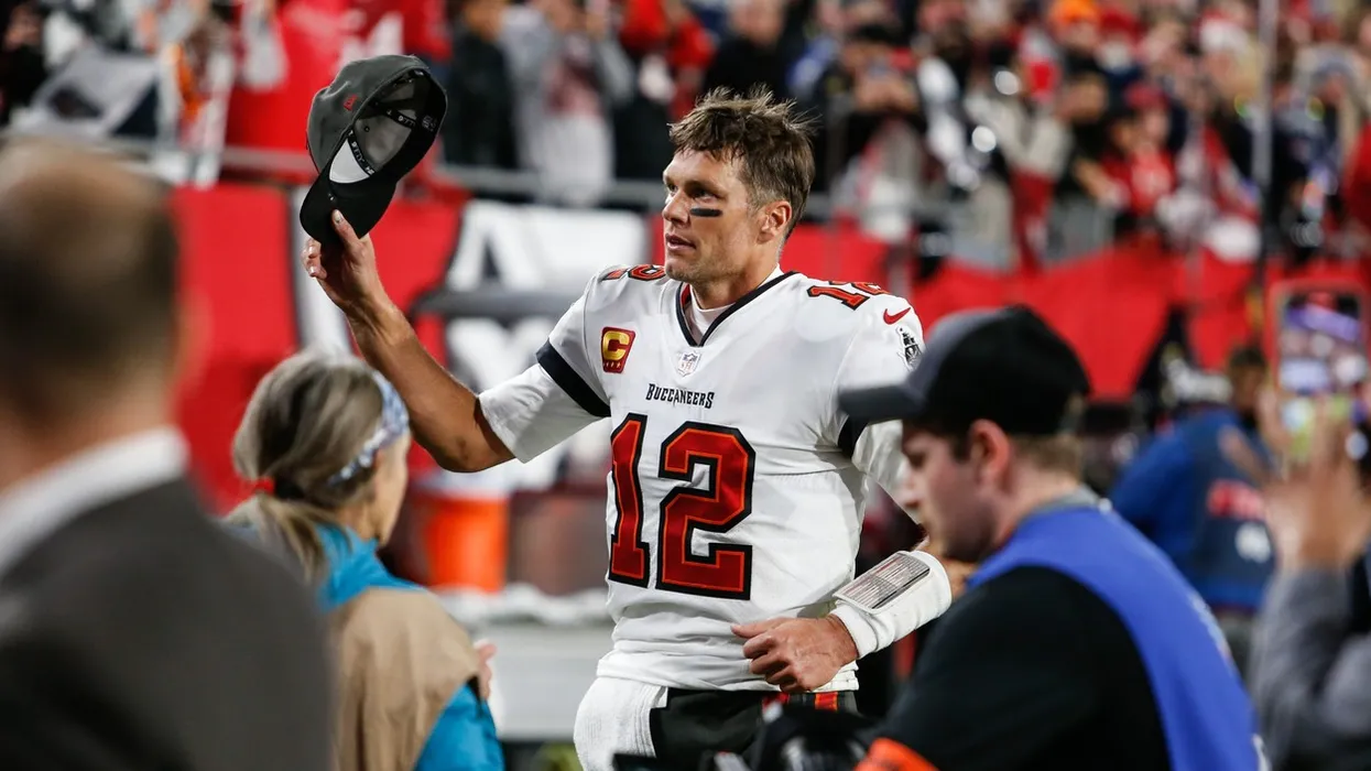 February 1, 2023: Quarterback Tom Brady raises his cap toward fans and jogs to the locker room after the Bucs were defeated by the Cowboys at Raymond James Stadium on Jan. 16.,Image: 753429415, License: Rights-managed, Restrictions: , Model Release: no