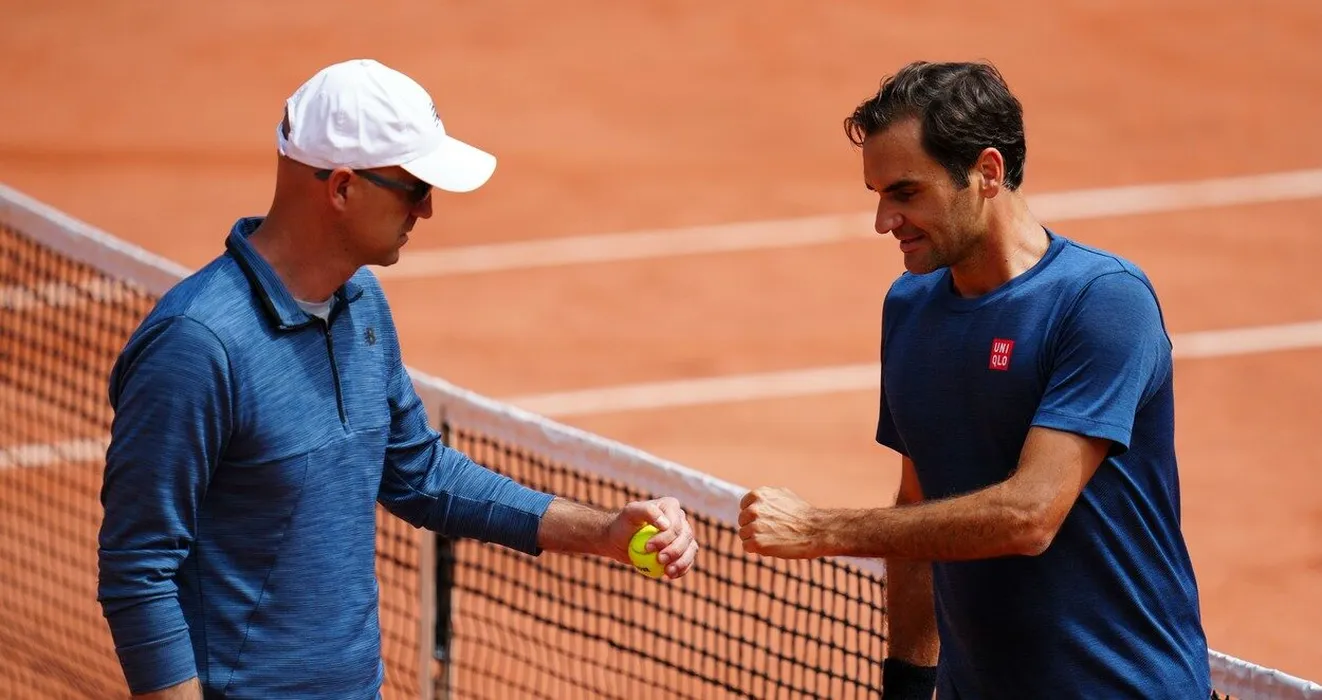 Roger Federer after his first practice of the tournament with coach Ivan Ljubicic