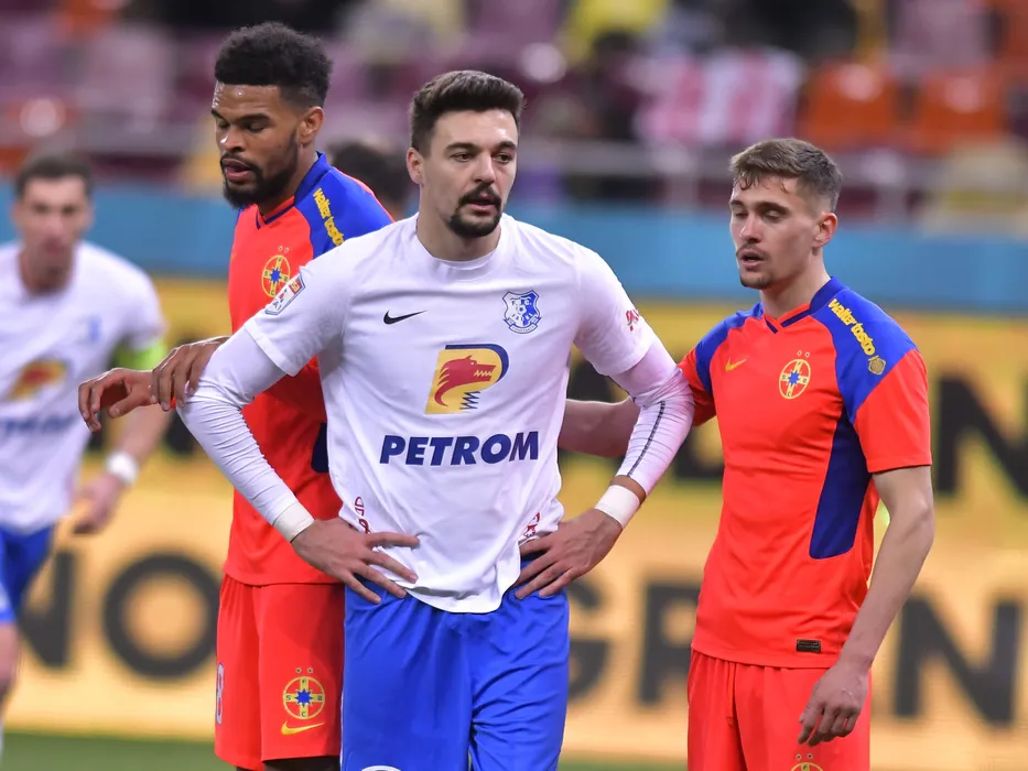 Sylas Laouari Edjouma Malcom, Adrian Petre Tabarcea si Sorin Danut Serban in meciul de fotbal dintre FCSB si Farul Constanta, contand pentru Liga 1 Casa Pariurilor, desfasurat pe Arena Nationala din Bucuresti, duminica 27 februarie 2022. © FOTO:Razvan Pasarica/SPORT PICTURES