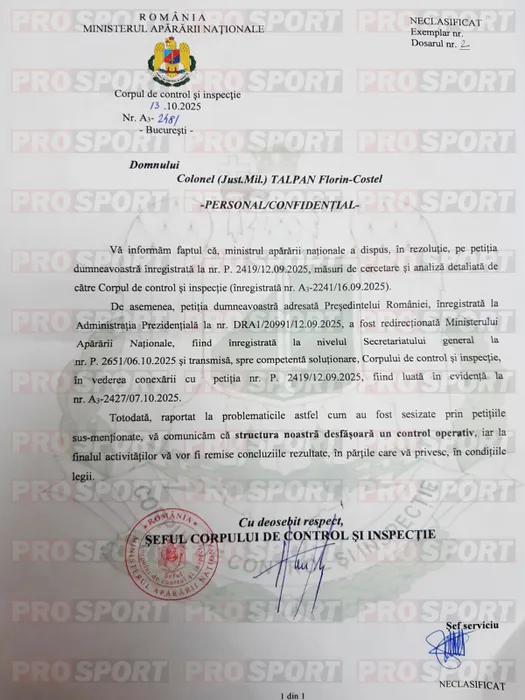 Document exploziv care dovedește că ministrul MApN a trimis Corpul de Control la Steaua București. Florin Talpan, pentru ProSport: „Au încercat să mușamalizeze de multe ori cu generalul Zisu”