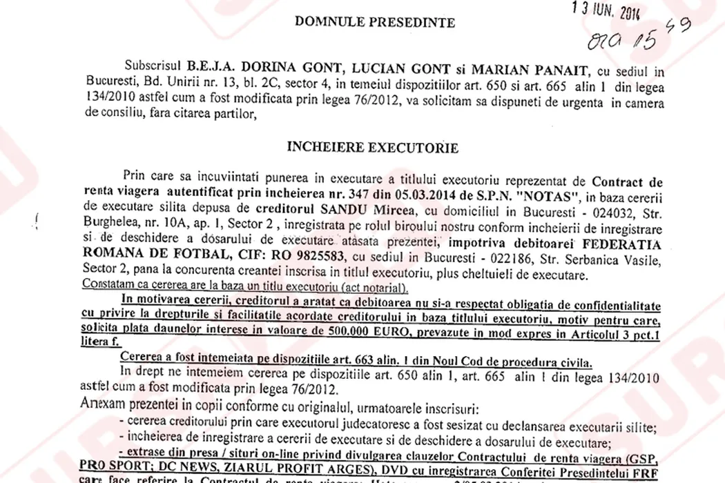 DOCUMENTE | Mircea Sandu a încercat de două ori să execute silit FRF. Nașul a cerut de fiecare dată 500.000 de euro. Instanța i-a respins acțiunile