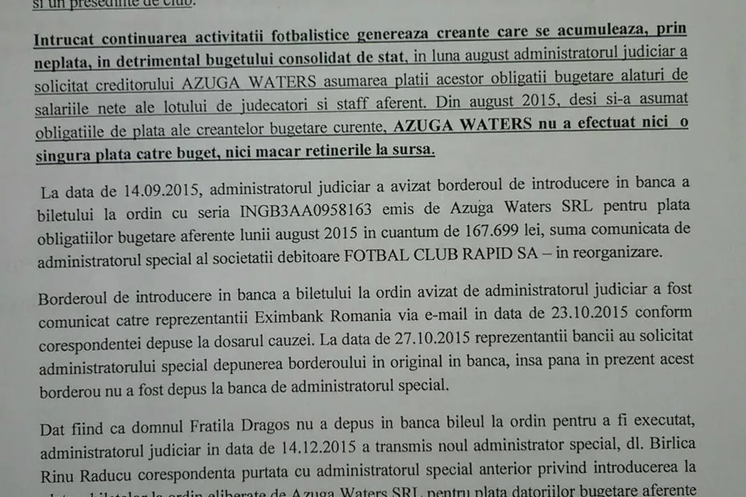 DOCUMENTE | Rapid, faza pe DNA: „Moraru a făcut o asociație care cere donații pentru club, dar banii merg în conturile lui Valerii. Încasările de la Fan Shop sunt luate de angajații Azuga Waters”. Violeta Moraru, dată în judecată