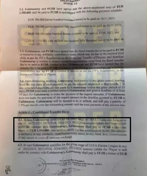 Documentul bombă care îi scoate un milion de euro din conturi lui Gigi Becali! Turcii au fost nevoiți să îl „sifoneze” în presă deși contractul e confidențial | FOTO