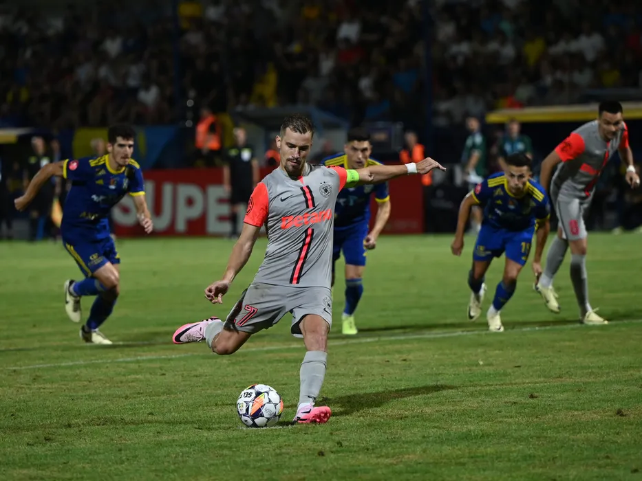 Darius Dumitru Olaru marchează un gol din penalty in meciul dintre Unirea Slobozia si FCSB, contand pentru Superliga Superbet, desfasurat pe Clinceni Arena din Clinceni, vineri 19 iulie 2024. © FOTO:Razvan Pasarica/SPORT PICTURES