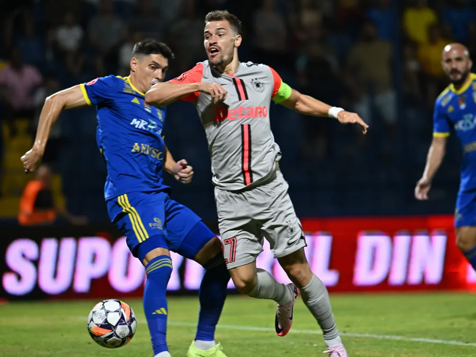 Marius Paul Antoche si Darius Dumitru Olaru in meciul dintre Unirea Slobozia si FCSB, contand pentru Superliga Superbet, desfasurat pe Clinceni Arena din Clinceni, vineri 19 iulie 2024. © FOTO:Razvan Pasarica/SPORT PICTURES