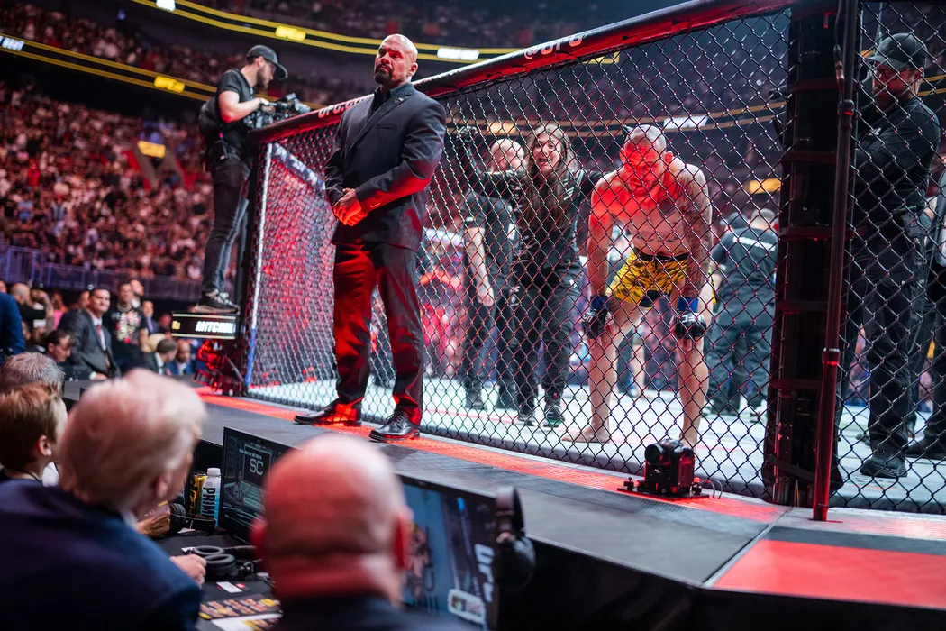 President Donald Trump attends UFC 314 at the Kaseya Center in Miami, Florida, Saturday, April 12, 2025. (Official White House Photo by Daniel Torok)