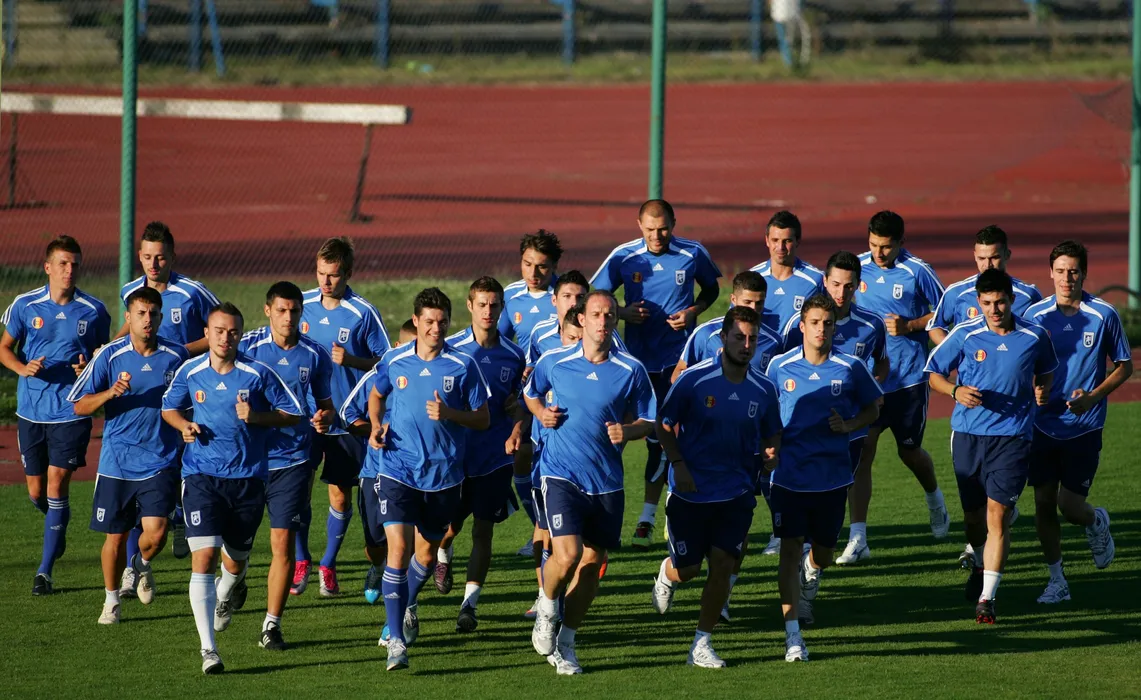 Dorel Stoica (C), noul antrenor al echipei Universitatea Craiova, conduce primul antrenament, luni, 4 iulie 2011. DARIUS MITRACHE / MEDIAFAX FOTO