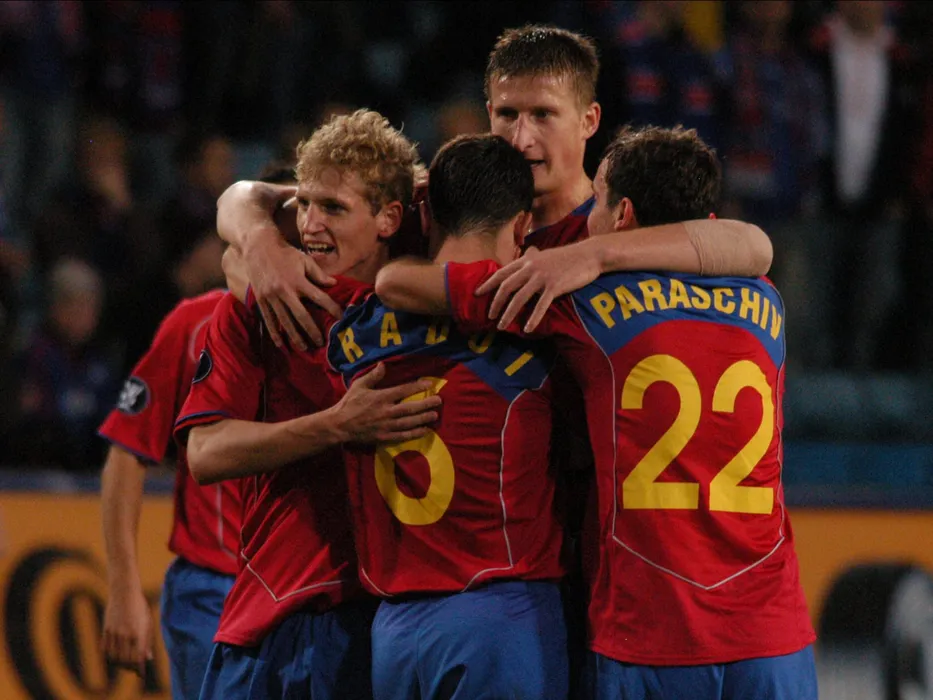 Bucurie stelista cu Mihai Nesu si Dorin Goian la meciul de fotbal dintre Valerenga FC si Steaua Bucuresti, contand pentru Cupa UEFA, disputat pe Stadionul Ullevaal din Oslo, miercuri 14 septembrie 2005. © FOTO:Razvan Pasarica/SPORT PICTURES