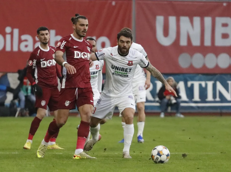 Aurelian Ionut Chitu si Karlo Muhar, Meriton Korenica in meciul de fotbal dintre AFC Hermannstadt Sibiu si FC CFR 1907 Cluj, contand pentru Superliga Superbet, desfasurat pe Stadionul Municipal din Sibiu, luni 16 februarie 2026. © FOTO:Valentin Macrea/SPORT PICTURES