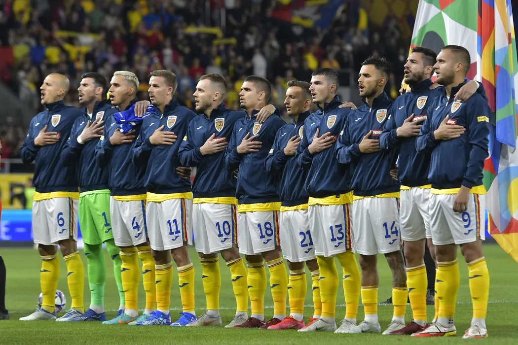 Fotbalistii romani la startul meciului de fotbal dintre Romania si Muntenegru, contand pentru Liga Natiunilor, desfasurat pe Stadionul Rapid Giulesti din Bucuresti, marti 14 iunie 2022. © FOTO:Razvan Pasarica/SPORT PICTURES