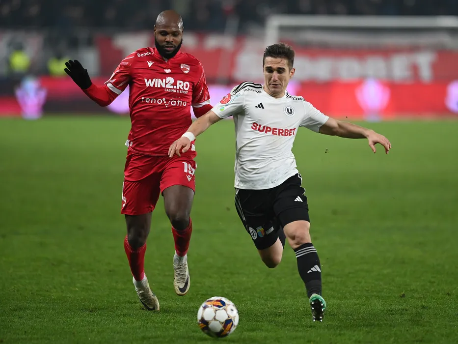 Hakim Djamel Abdallah si Bogdan Ilie Vatajelu in meciul de fotbal dintre Dinamo Bucuresti si Universitatea Cluj, din cadrul Superligii Superbet, desfasurat pe Stadionul National Arcul de Triumf din Bucuresti, luni 11 decembrie 2023. © FOTO:Razvan Pasarica/SPORT PICTURES