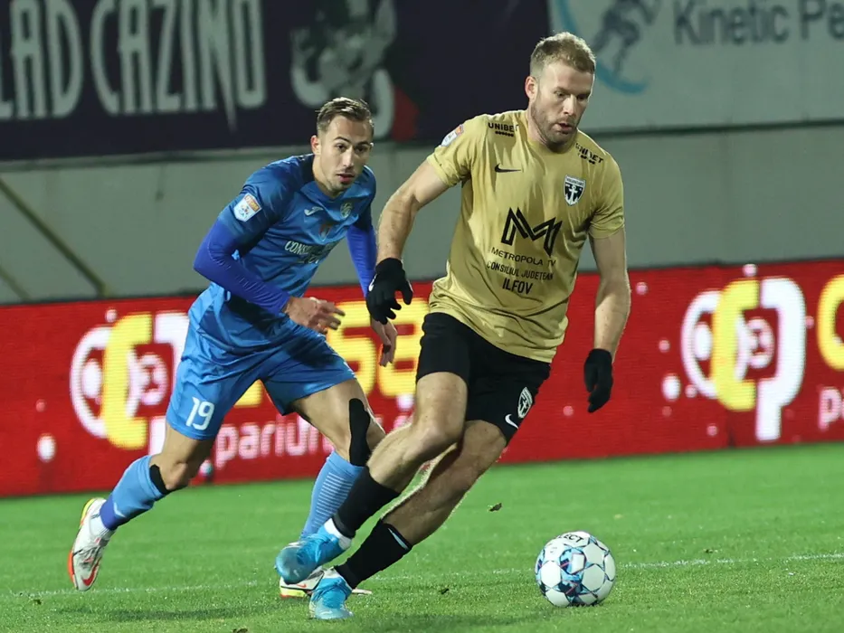 Adam Nemec si Denis Venturain meciul de fotbal dintre Academica Clinceni si FC Voluntari, contand pentru Liga 1 Casa Pariurilor, desfasurat pe Stadionul Marin Anastasovici din Giurgiu, marti 14 decembrie 2021. © FOTO:Gheorghe Fluster/SPORT PICTURES