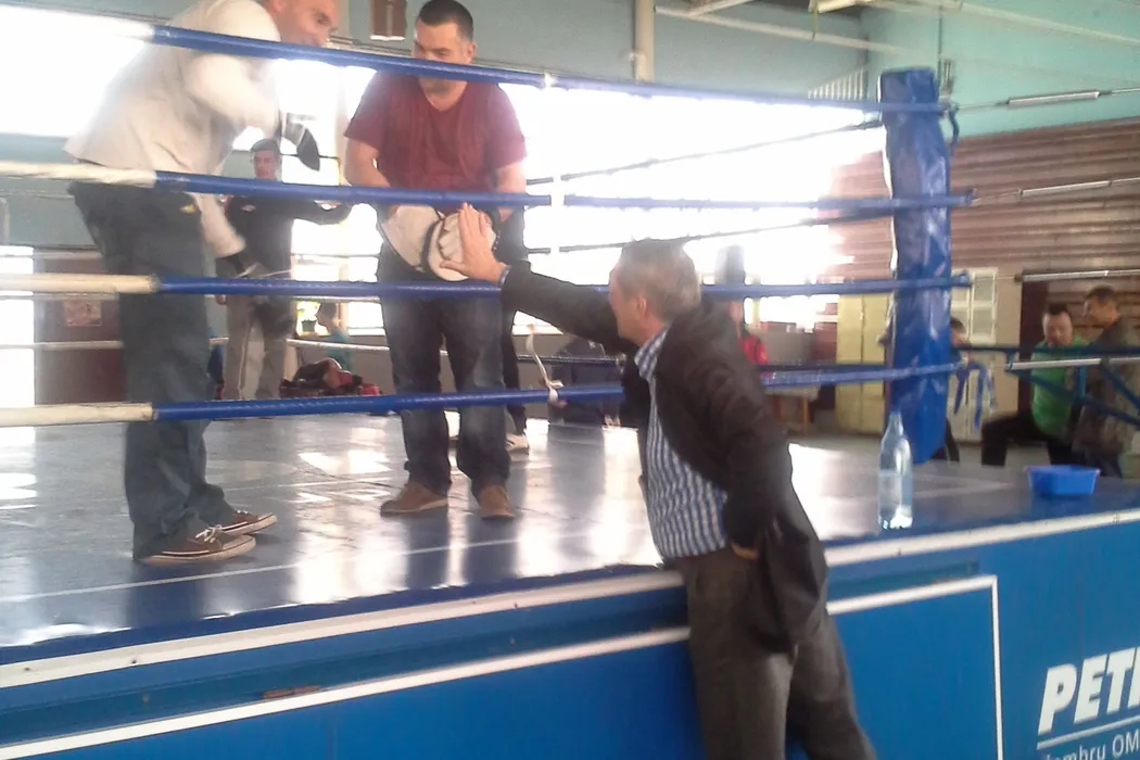Doroftei, în ring cu selecționerul naționalei de polo, Dejan Stanojevic