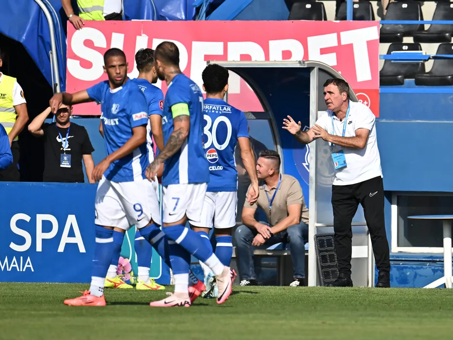Gheorghe Hagi reacționează dupa un gol constantean reusit in meciul de fotbal dintre Farul Constanta si Sepsi OSK Sfantu Gheorghe, contand pentru Superliga Superbet, desfasurat pe Stadionul central al Academiei Gheorghe Hagi din Ovidiu, duminica 22 septembrie 2024. © FOTO:Razvan Pasarica/SPORT PICTURES