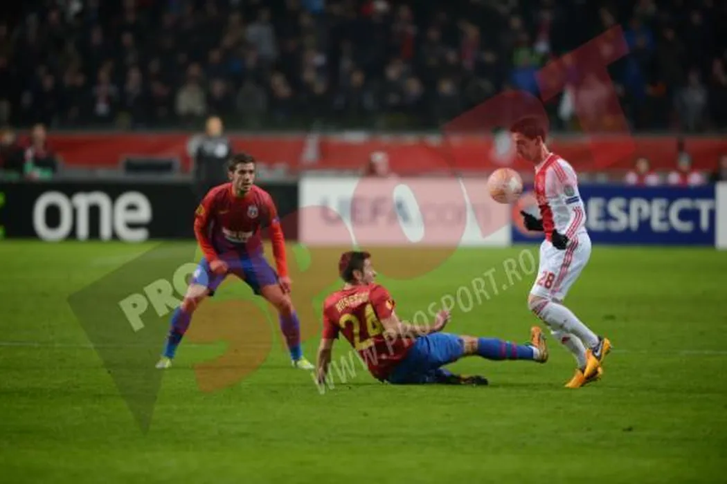 Două goluri și doi absenți pentru retur!** Steaua, cu un pas afară din Europa! Ajax-Steaua 2-0