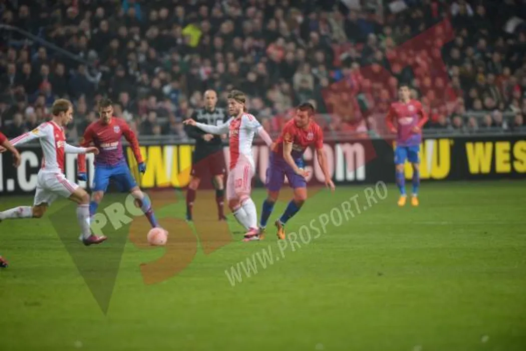 Două goluri și doi absenți pentru retur!** Steaua, cu un pas afară din Europa! Ajax-Steaua 2-0