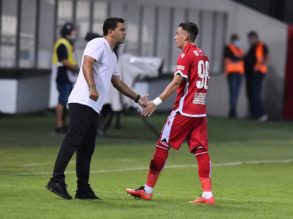 Cosmin Contra il incurajeaza pe Andreias Mircea Mihaiu dupa meciul de fotbal dintre Chindia Targoviste si Dinamo Bucuresti, contand pentru Liga 1 Casa Pariurilor, desfasurat fara spectatori pe Stadionul Ilie Oana din Ploiesti, luni 31 august 2020. © FOTO:Razvan Pasarica/SPORT PICTURES