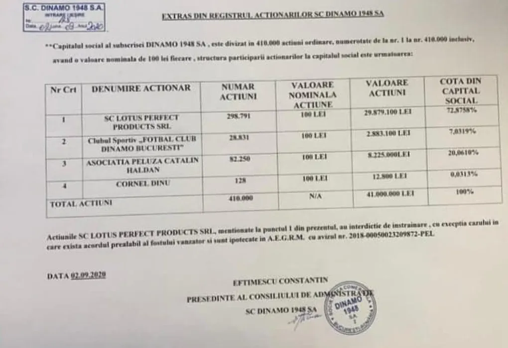 Avem dovada! Asociația Peluza Cătălin Hîldan deține 20% din SC Dinamo 1948 SA. Fanii pot intra în posesia altui pachet de acțiuni | FOTO EXCLUSIV