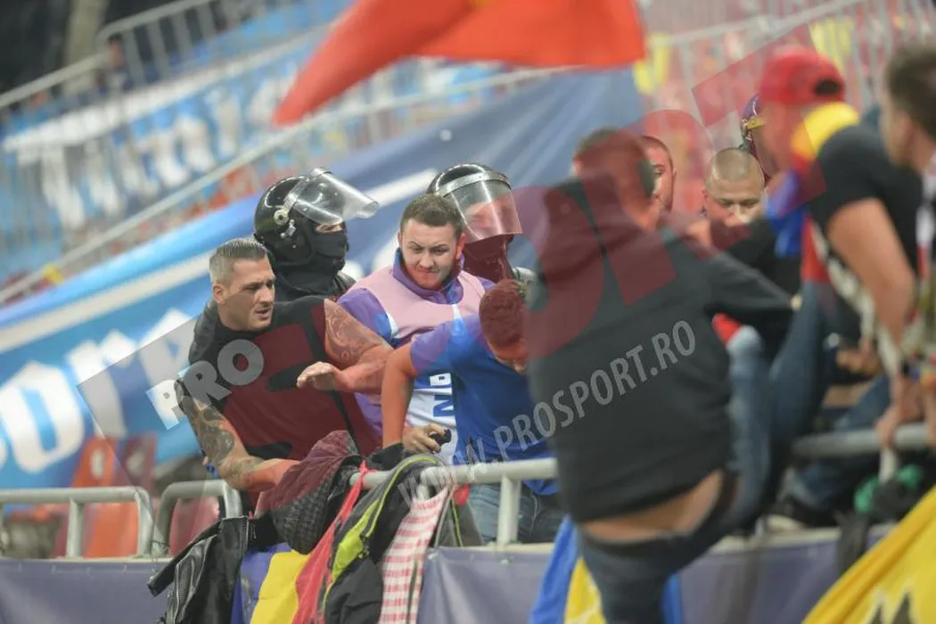 DOVADĂ‚ FOTO | Andrei Oprea, fiul patronului BGS, surprins „la bătaie” la meciul cu Ungaria. Reacția companiei: „A fost acolo în calitate de angajat”. Oprea Jr. a lovit un fan căzut la pământ