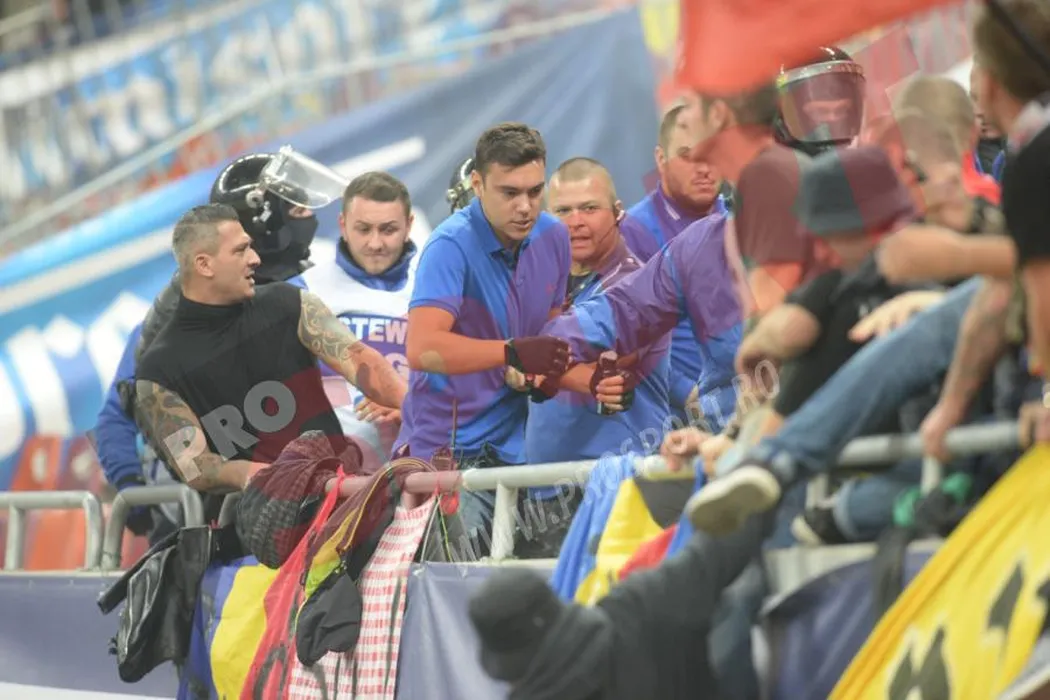 DOVADĂ‚ FOTO | Andrei Oprea, fiul patronului BGS, surprins „la bătaie” la meciul cu Ungaria. Reacția companiei: „A fost acolo în calitate de angajat”. Oprea Jr. a lovit un fan căzut la pământ
