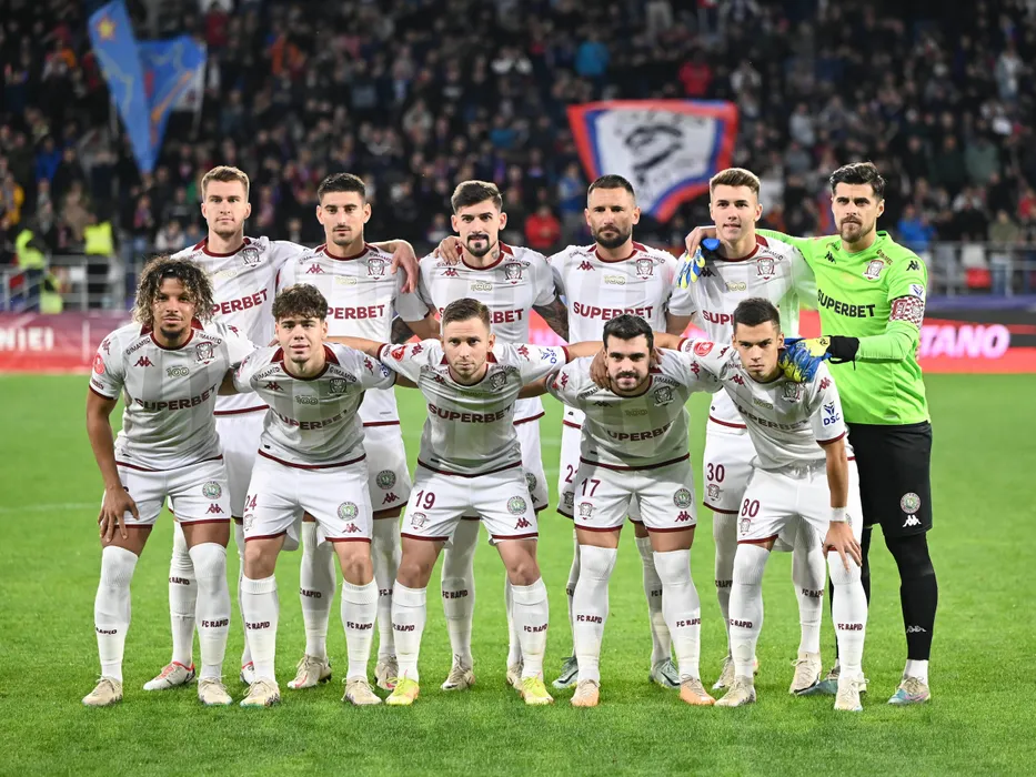 Fotbalistii rapidisti la o fotografie de grup realizata inaintea meciului de fotbal dintre CSA Steaua Bucuresti si Rapid Bucuresti, contand pentru Cupa Romaniei Betano, desfasurat pe Stadionul Steaua-Ghencea din Bucuresti, miercuri 1 noiembrie 2023. © FOTO:Razvan Pasarica/SPORT PICTURES