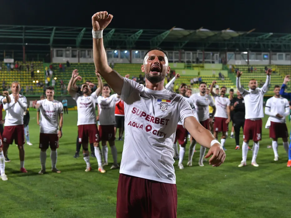 Dragos Grigore saluta galeria dupa meciul de fotbal dintre CS Mioveni si Rapid Bucuresti, contand pentru Liga 1 Casa Pariurilor, desfasurat pe Stadionul Orasenesc din Mioveni, sambata 23 iulie 2021. © FOTO:Razvan Pasarica/SPORT PICTURES
