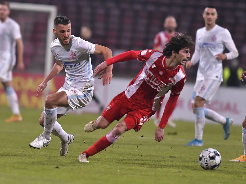 Razvan Constantin Oaida si Diego Fabbrini in meciul de fotbal dintre Dinamo Bucuresti si FCSB, contand pentru Cupa Romaniei, desfasurat fara spectatori pe Stadionul Dinamo din Bucuresti, miercuri 10 februarie 2021. © FOTO:Razvan Pasarica/SPORT PICTURES