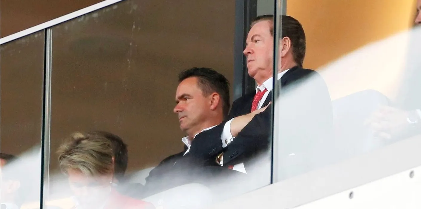 DEURNE, BELGIUM - OCTOBER 23 : Overmars Marc sports director of Antwerp FC and Gheysens Paul president of Antwerp FC during the Jupiler Pro League match between Royal Antwerp FC and KRC Genk on October 23, 2022 in Deurne, Belgium, 23/10/2022 (,Image: 732704564, License: Rights-managed, Restrictions: , Model Release: no