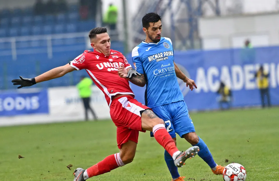 Robert Moldoveanu si Paul Pirvulescu in meciul de fotbal dintre Academica Clinceni si Dinamo Bucuresti, contand pentru Liga 1 Casa Pariurilor, disputat pe Clinceni Arena din Clinceni, duminica 24 noiembrie 2019. © FOTO:Razvan Pasarica/SPORT PICTURES
