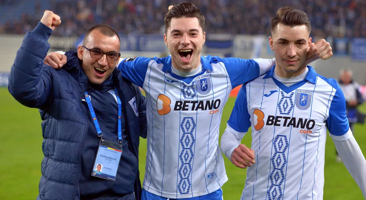 Bucurie a oltenilor cu Andrei Burlacu si Alexandru Mateiu dupa meciul de fotbal dintre CS Universitatea Craiova si Astra Giurgiu, contand pentru play off-ul Ligii 1 Betano, desfasurat pe Stadionul Ion Oblemenco din Craiova, sambata 10 martie 2018. © FOTO Razvan Pasarica/SPORT PICTURES
