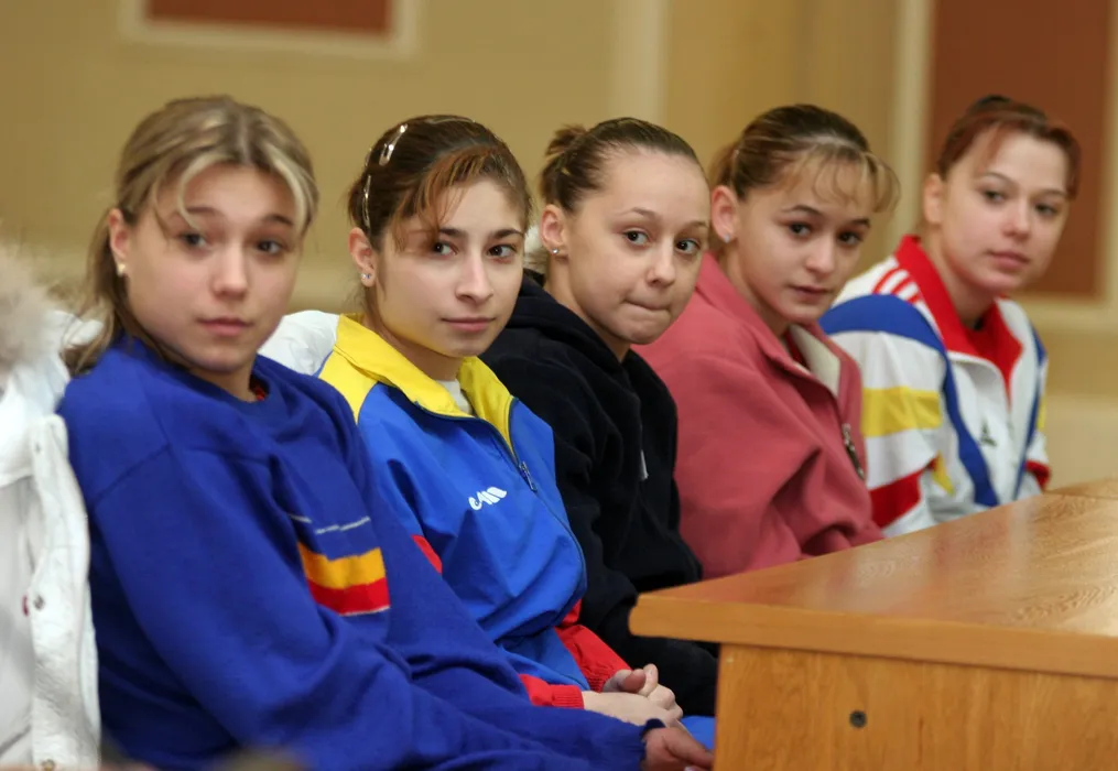 Antrenorii Octavian Belu si Mariana Bitang au fost audiati, joi, la Comisia pentru Invatamint, Stiinta, Tineret si Sport din Camera Deputatilor. In imagine, gimnastele, Monica Rosu, Alexandra Eremia, Daniela Sofronie, Andreea Munteanu si Oana Ban