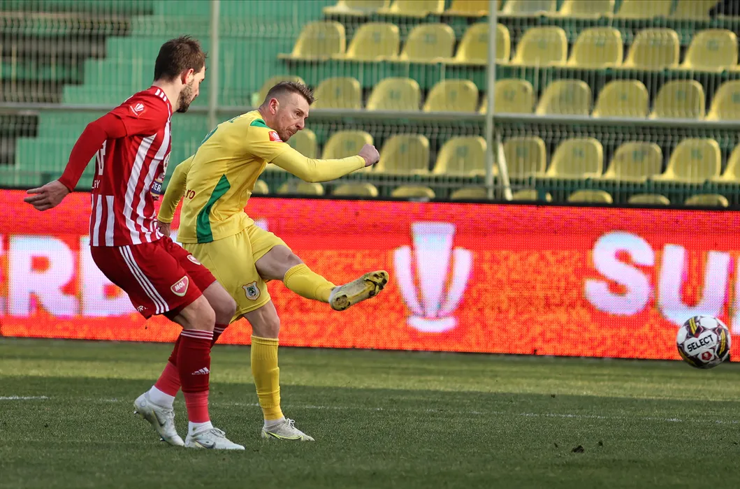 Meciul de fotbal dintre echipele CS Mioveni si Sepsi OSK din etapa a XXIV-a a Superligii, disputat pe stadionul Orasenesc din Mioveni, duminica, 5 februarie 2023. GEORGE FILIP / MEDIAFAX FOTO