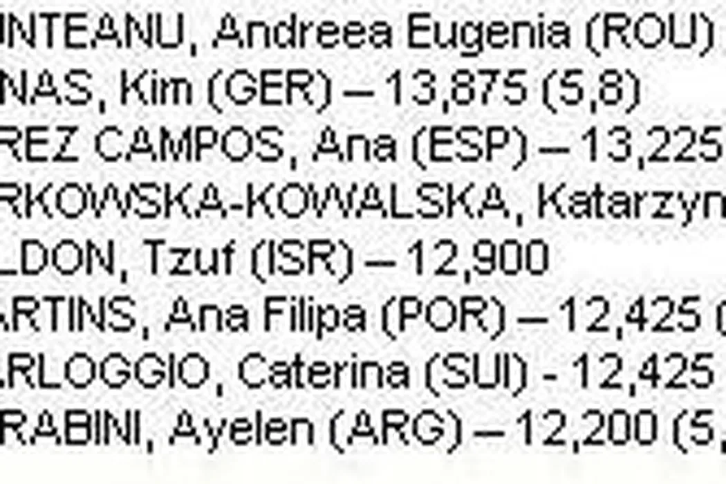 Dublă pentru Andreea Munteanu la „Turneul Maeștrilor” de la Cottbus. Ea a câștigat medalia de aur la bârnă și cea de argint la sol