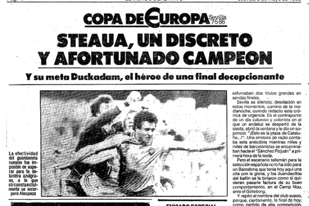 DUCKADAM 60 | Așa au trăit spaniolii triumful Stelei din 1986. Ce au titrat ziarele iberice, după finala Cupei Campionilor: „Duckadam, eroul meciului. Dezastru istoric pentru Barcelona”