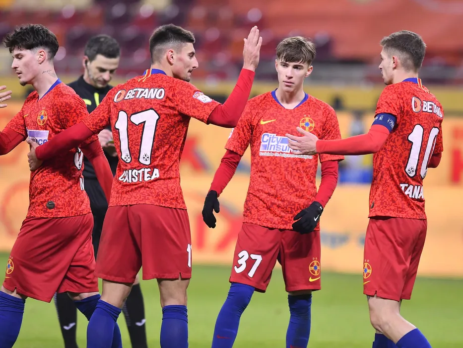Bucurie a fotbalistilor stelisti dupa un gol marcat cu Dennis Man, Iulian Lucian Cristea, Octavian George Popescu si Florin Lucian Tanasein meciul de fotbal dintre FCSB si FC Voluntari, contand pentru Liga 1 Casa Pariurilor, desfasurat fara spectatori pe Arena Nationala din Bucuresti, vineri 22 ianuarie 2021. © FOTO:Razvan Pasarica/SPORT PICTURES