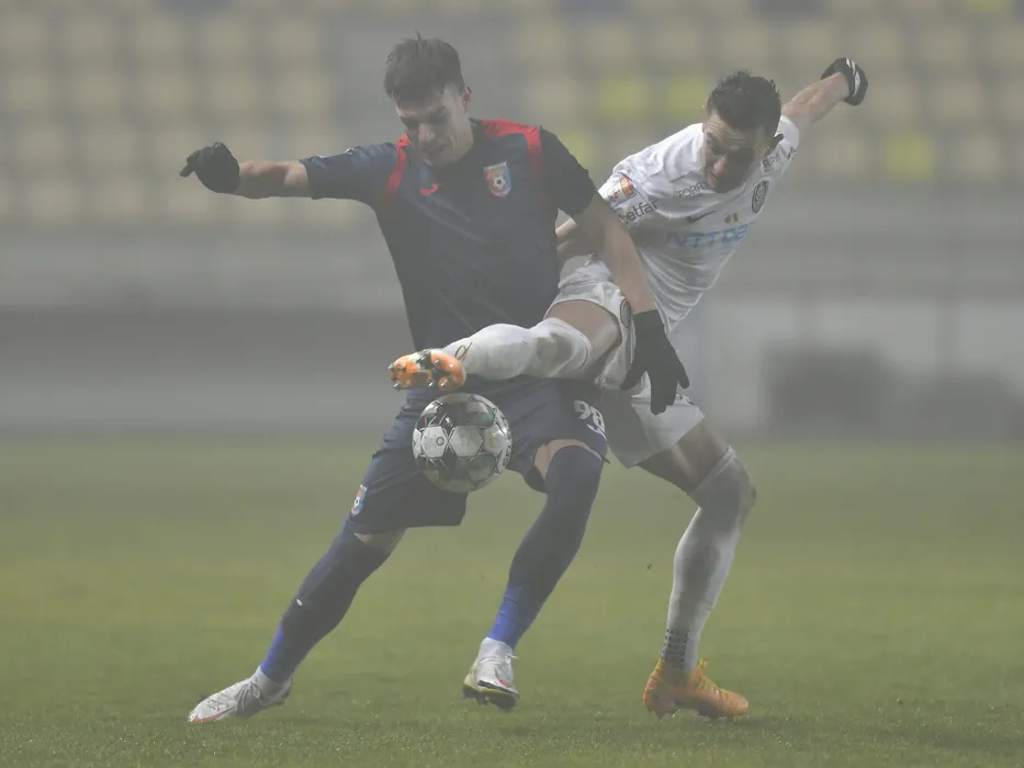 Tiberiu Ionut Capusa si Valentin Ionut Costache in meciul de fotbal dintre Chindia Targoviste si CFR Cluj, contand pentru Liga 1 Casa Pariurilor, desfasurat fara spectatori pe Stadionul Ilie Oana din Ploiesti, luni 1 februarie 2021. © FOTO:Razvan Pasarica/SPORT PICTURES