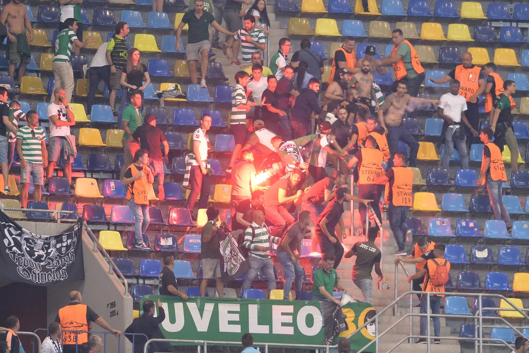 Duel aprins între fanii români și cei portughezi. Forțele de ordine au intervenit după ce o torță a zburat din sectorul oaspeților spre suporterii români