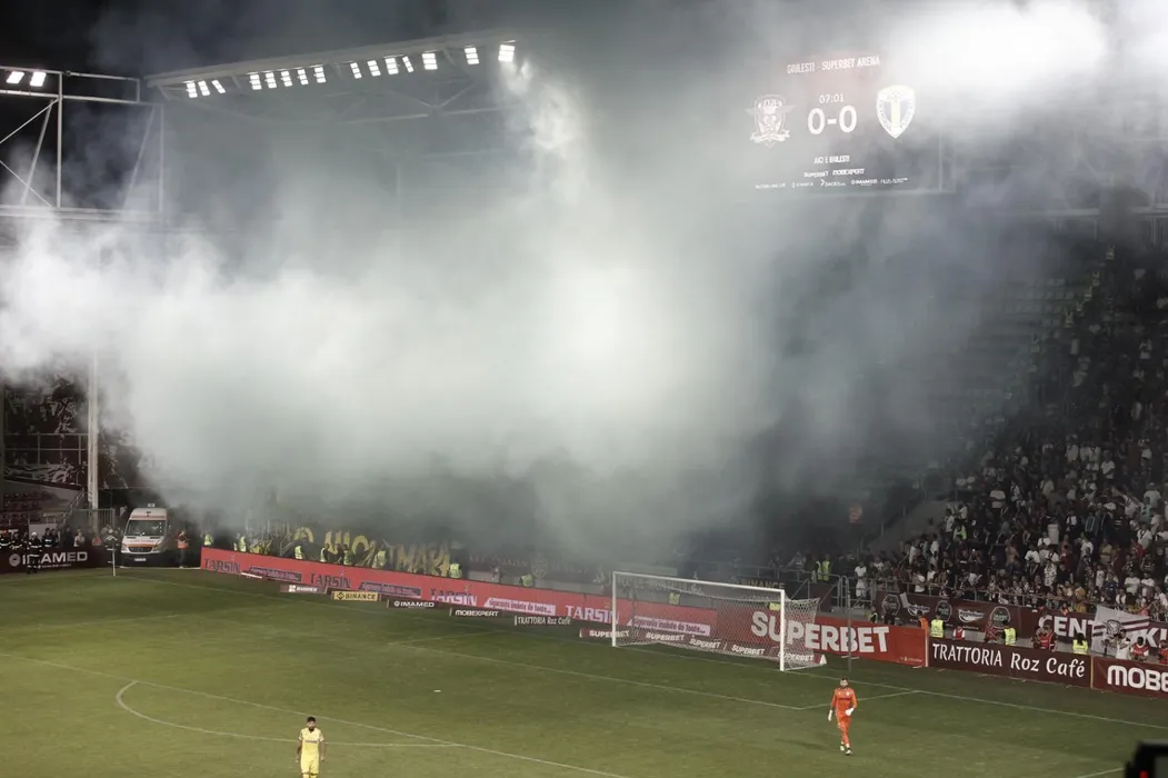 Duel spectaculos al scenografiilor în debutul meciului Rapid – Petrolul! Ironia rapidiștilor și momentul pirotehnic al „lupilor” care a întrerupt partida! | GALERIE FOTO