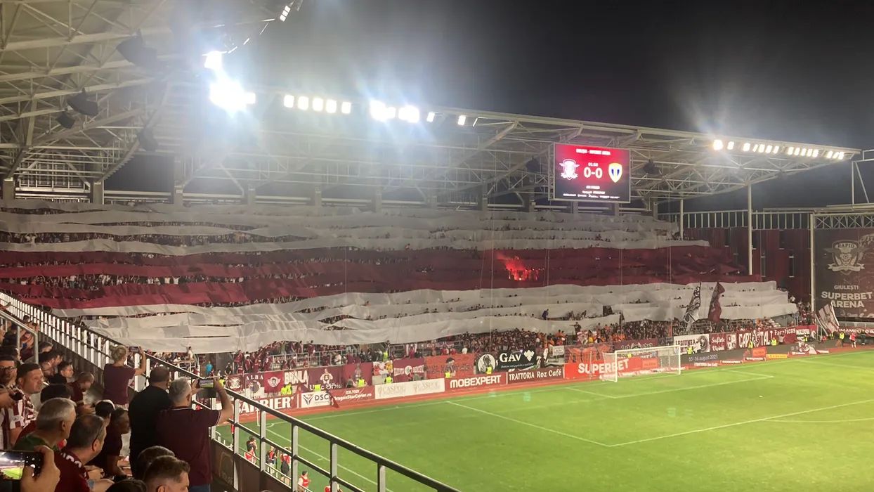 Duel spectaculos al scenografiilor în debutul meciului Rapid – Petrolul! Ironia rapidiștilor și momentul pirotehnic al „lupilor” care a întrerupt partida! | GALERIE FOTO