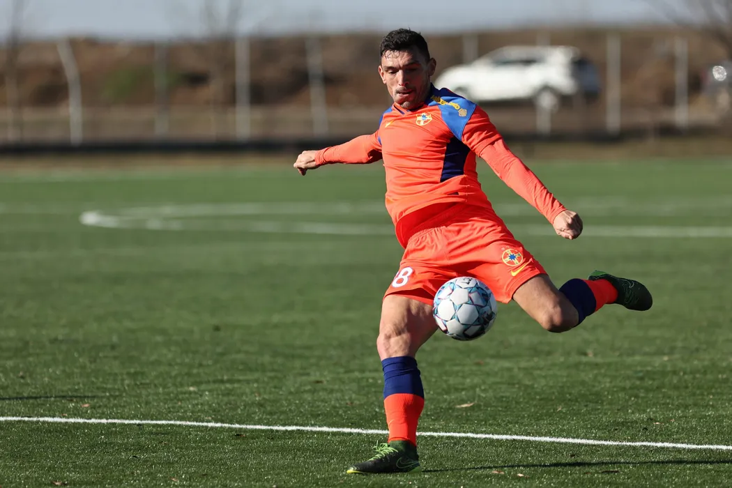 Echipele CS Mioveni (echipament galben ) si FCSB au terminat la egalitate o partida amicala de fotbal, sambata, 15 ianuarie 2022, la Mioveni. GEORGE FLUSTER / MEDIAFAX FOTO
