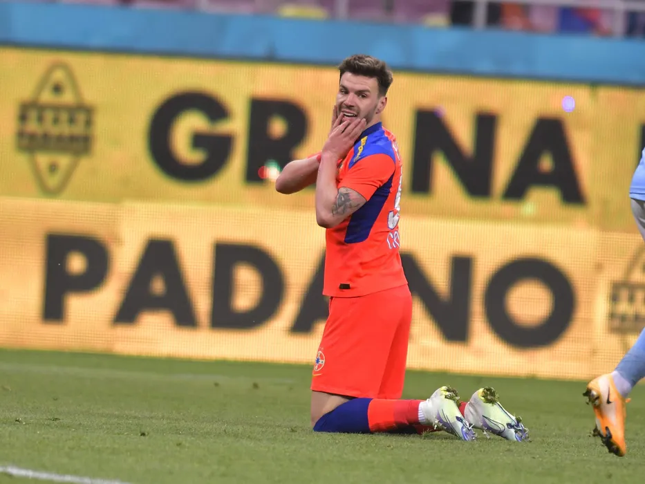 Andrei Ioan Cordea suparat dupa o ratare avuta in meciul de fotbal dintre FCSB si FC Voluntari, contand pentru Liga 1 Casa Pariurilor, desfasurat pe Arena Nationala din Bucuresti, duminica 6 martie 2022. © FOTO:Razvan Pasarica/SPORT PICTURES