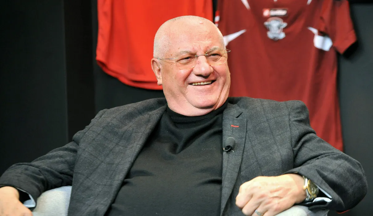 Fostul presedinte al Ligii Profesioniste de Fotbal (LPF), Dumitru Dragomir, este intervievat de un reporter, marti 19 decembrie 2017, in platoul emisiunii Pro Sport Live din Bucuresti. MARIAN ILIE / MEDIAFAX FOTO